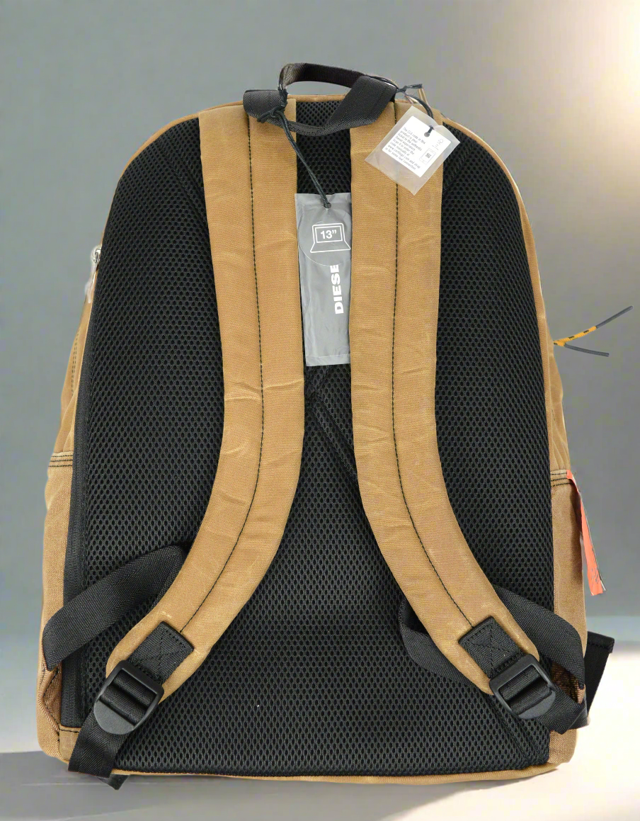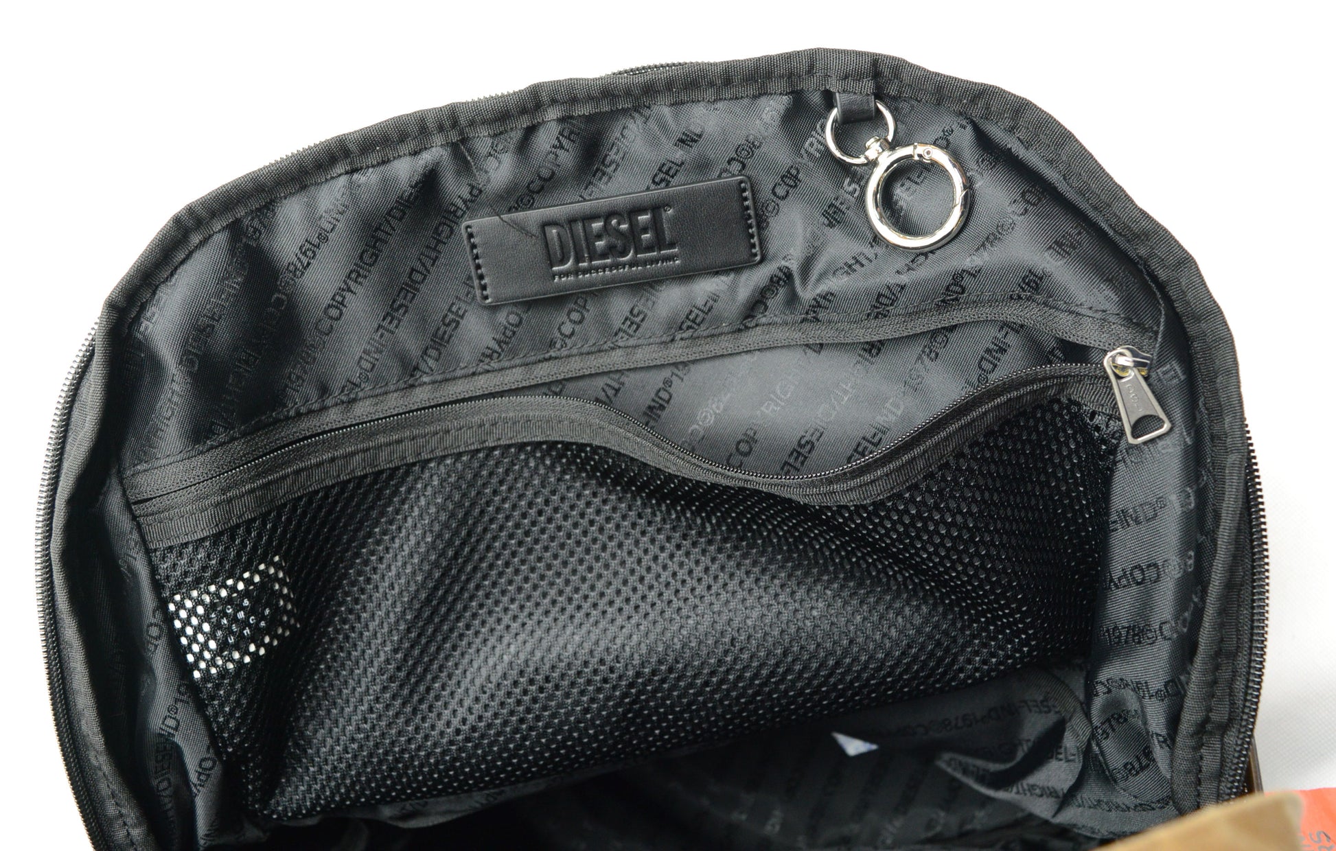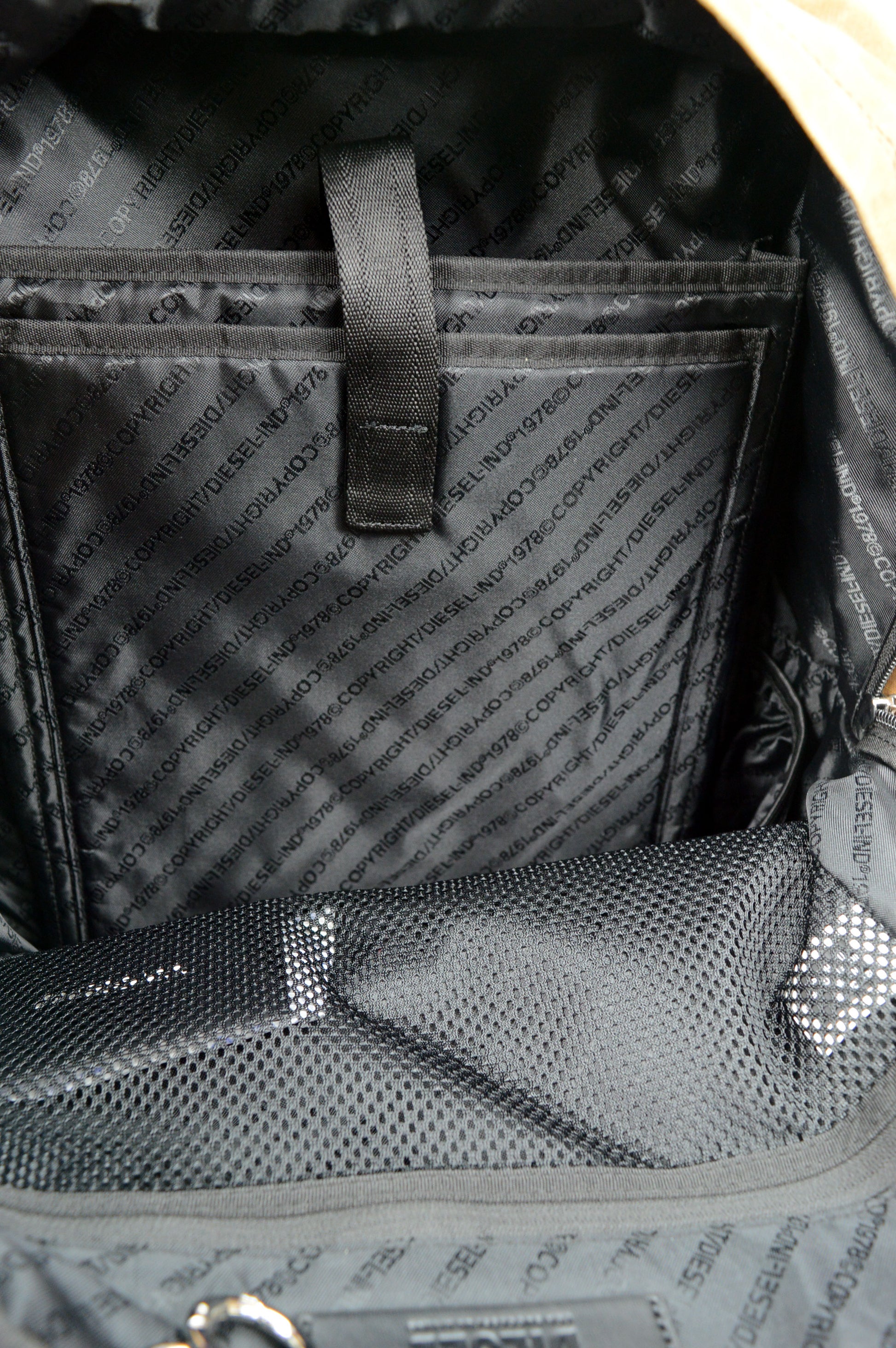 Голяма раница Diesel с два предни джоба. Вътрешно отделение за устройство с размер до 15". Има вътрешен джоб от мрежа и метален държач за ключове.