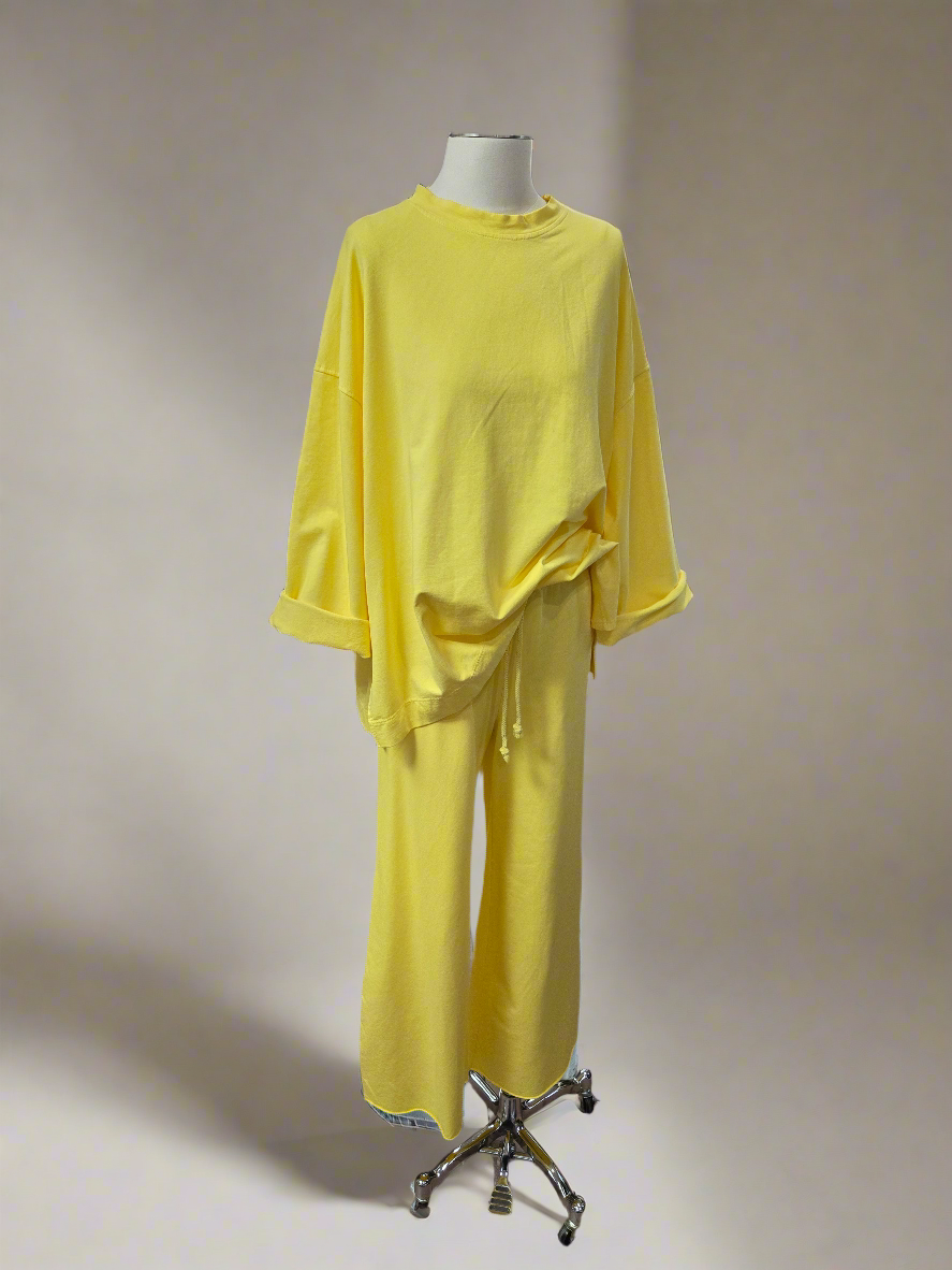 Дамският екип, състоящ се от панталон и суитшърт, е универсално и удобно облекло, подходящо за различни поводи.