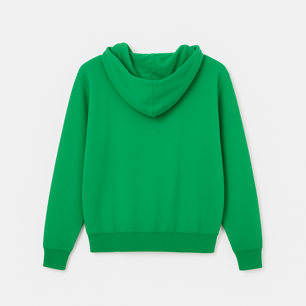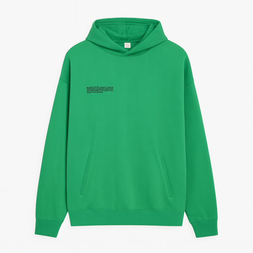 Стилен зелен суитшърт, изработен от органичен памук с гладка и устойчива плетка. Материята е лека, мека и дишаща, осигуряваща комфорт през целия ден. Моделът е с класическа качулка и предни джобове, подходящ както за ежедневието, така и за свободното време.