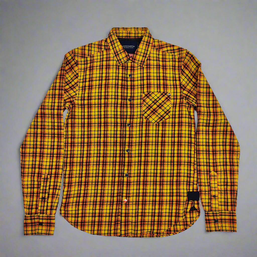 * Цвят и дизайн: Ризата е в ярки, контрастни цветове - жълто и черно в карирана шарка. Този тип шарка е класически и вечен, но в същото време придава на ризата модерен и свеж вид.