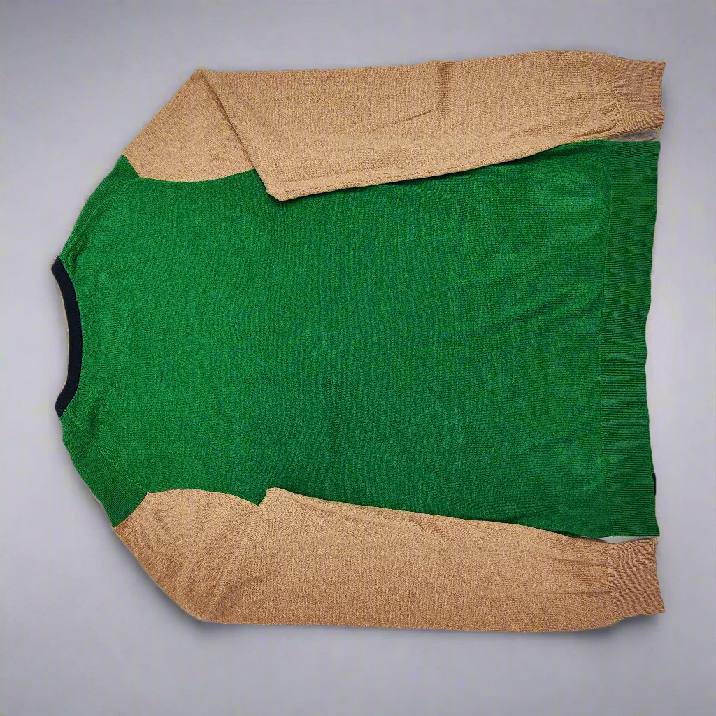 Естествена елегантност с този пуловер от вълна и памук. Изработен от висококачествени натурални материали, този пуловер е не само красив, но и изключително издръжлив. Вълната придава лукс и топлина, докато памукът осигурява дишаемост и комфорт. Перфектният избор за тези, които ценят качеството и естествените материи.