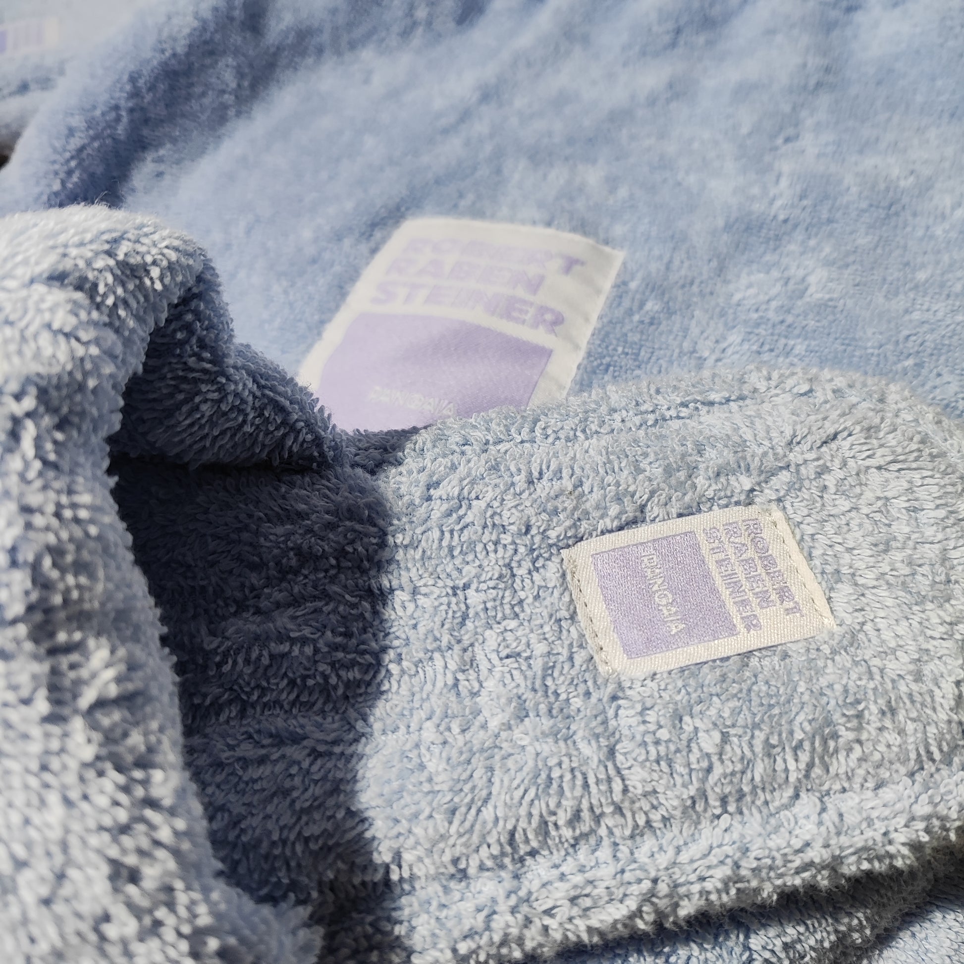 Луксозни светлосини хавлиени чехли Robert Rabensteiner- PANGAIA, изработени от мека и абсорбираща материя. Подходящи за ежедневна употреба у дома или при пътуване, те осигуряват комфорт и лекота с всяка стъпка. Отвореният дизайн позволява проветрение, а плътната хавлиена текстура придава усещане за уют и стил. Идеалният избор за хора, които ценят удобството и елегантната простота.