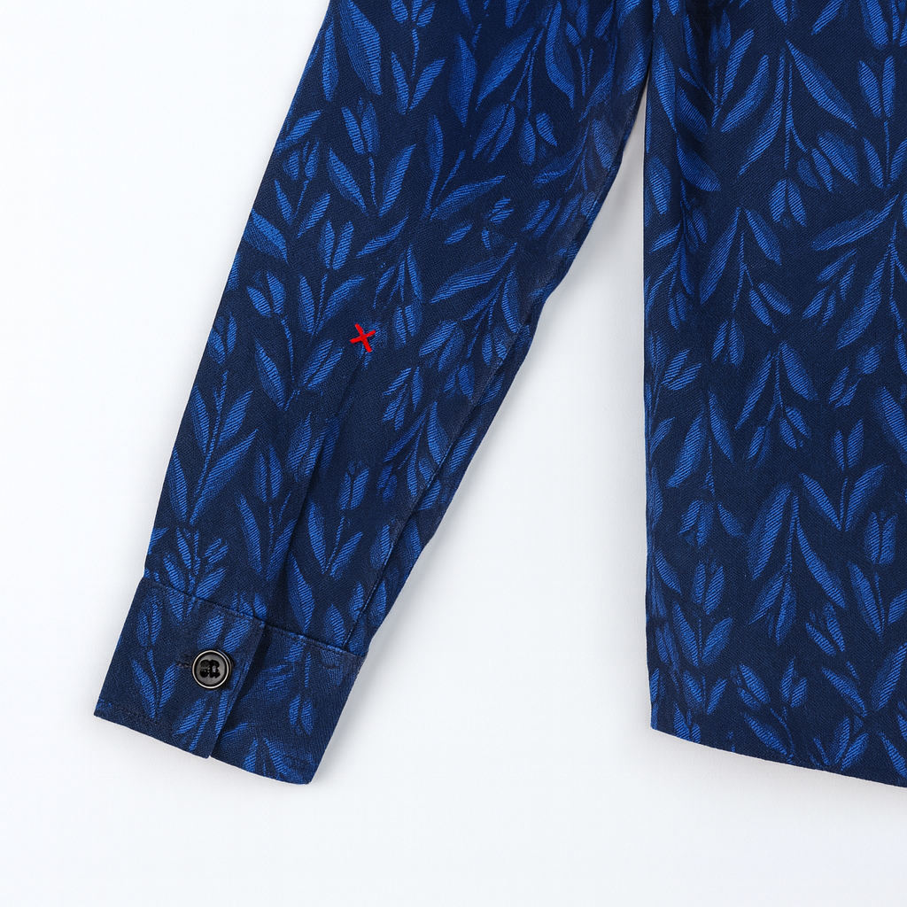 Мъжка риза-яке Scotch & Soda, изработена от по-плътен деним с елегантен син десен на листа. Подходяща е както за носене като риза, така и като леко яке за преходните сезони. Отличава се с класическа яка, джобове с копчета и качествена изработка, която комбинира комфорт и стил.